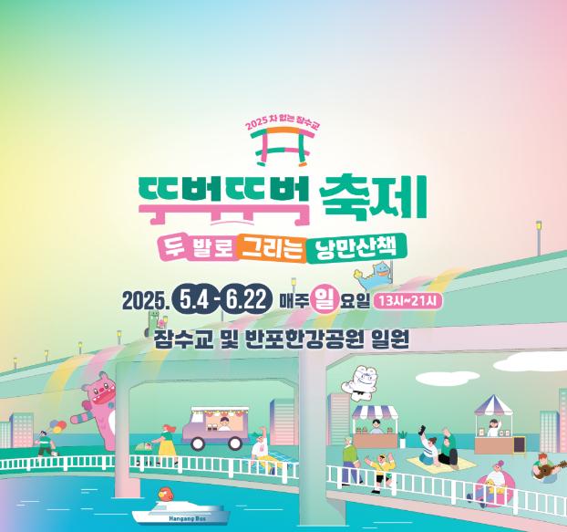 2025년 5월에 차 없는 잠수교 뚜벅뚜벅 축제'는 서울 반포한강공원과 잠수교 일대에서 개최됩니다. 축제는 운동수교 남단(서초 반구포동)부터 북단(용산구 서빙고동)까지 운동수교 전법과 반포한강공원(달빛광장, 세빛섬 야외무대 등) 일원에서 진행됩니 다. 축제 기간 동안만 오전 11시부터 오후 11시까지 약 1.1km 사랑하는 차량이 제한적으로 제어되고, 그들은 한강 위 잠수교 를 둘러싸고 다양한 프로그램과 공연, 플리마켓, 푸드트럭, 심리링존 등을 즐길 수 있습니다