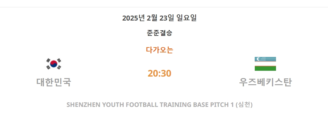한국 U-20 대표팀은 2025 AFC U-20 아시안컵 8강전에서 우즈베키스탄과 맞붙게 됩니다.